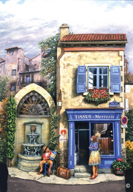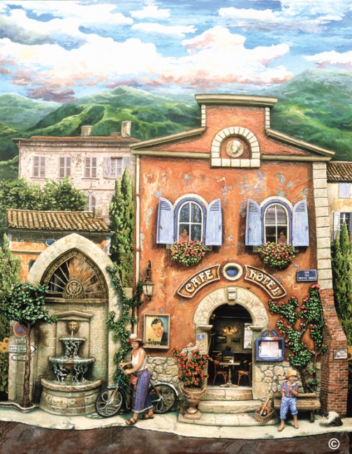 La technique du marouflage est connue depuis le moyen âge. Cette technique consiste à encoler avec pression un imprimé sur une surface dure. Après plusieurs opérations qui s’étendent sur plus d’une semaine, la maroufle ainsi nommée, est retouchée, surfacée, vernie, numérotée, signée et encadrée. Grandeurs: Toile sur bois : 11"x15"